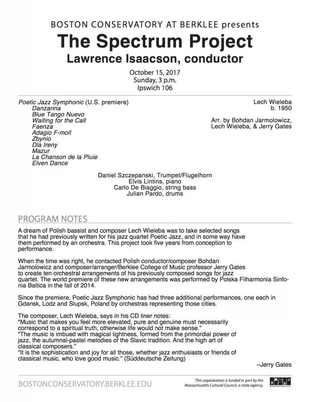 15. Oktober 2017 POETIC JAZZ SYMPHONIC im Spectrum Project in Boston